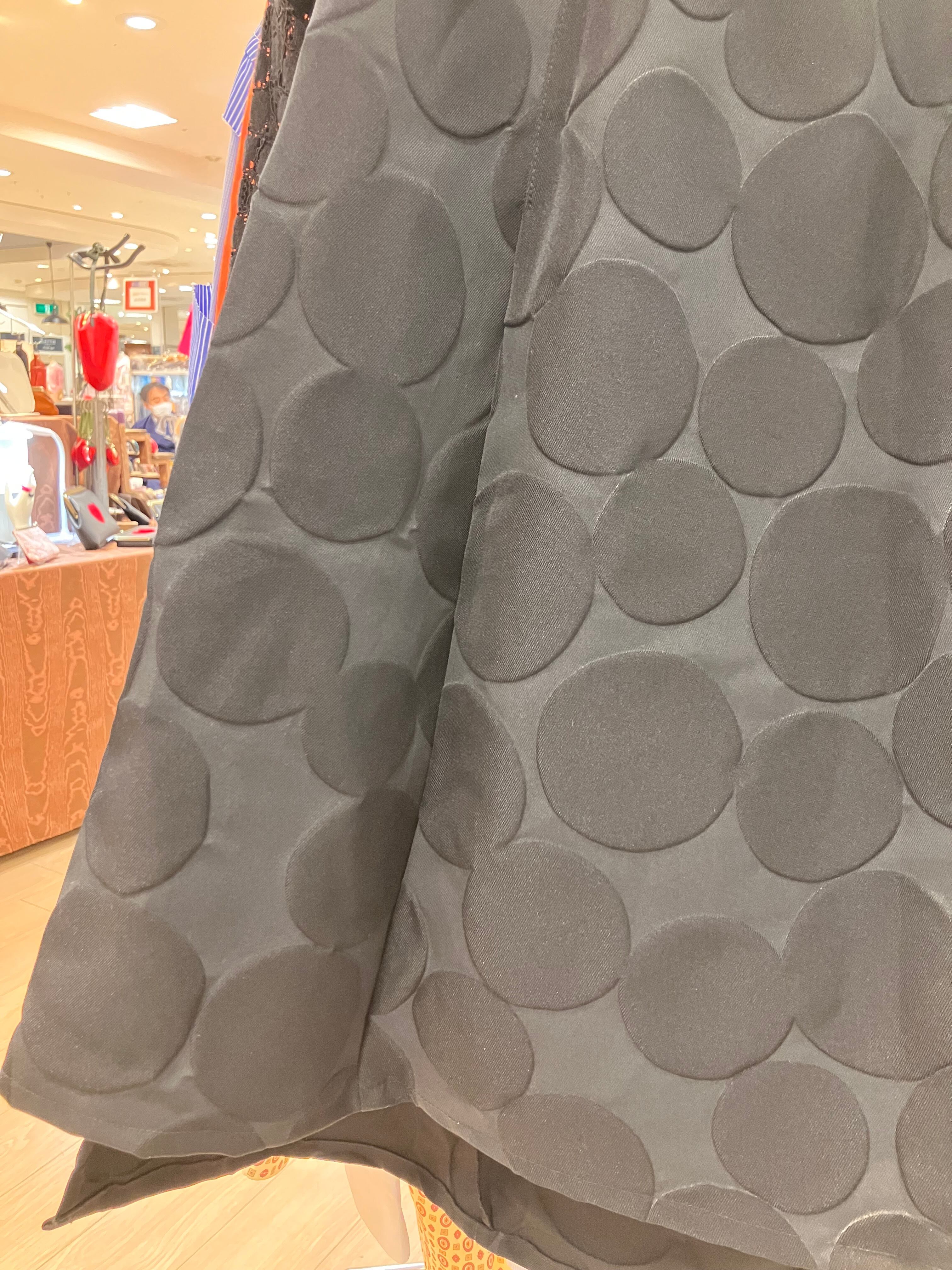・エンボス加工が施されたドット模様が特徴的なスカート。