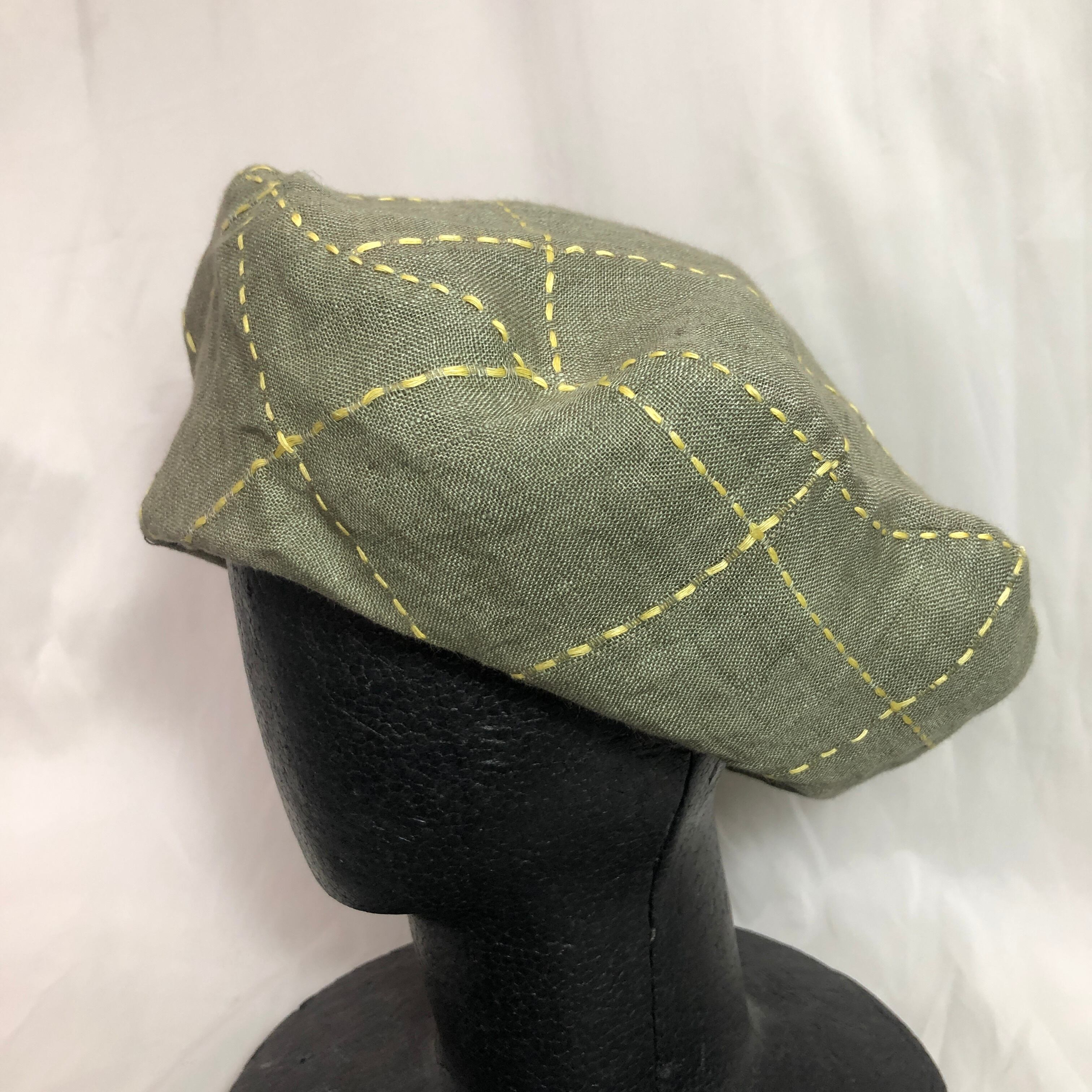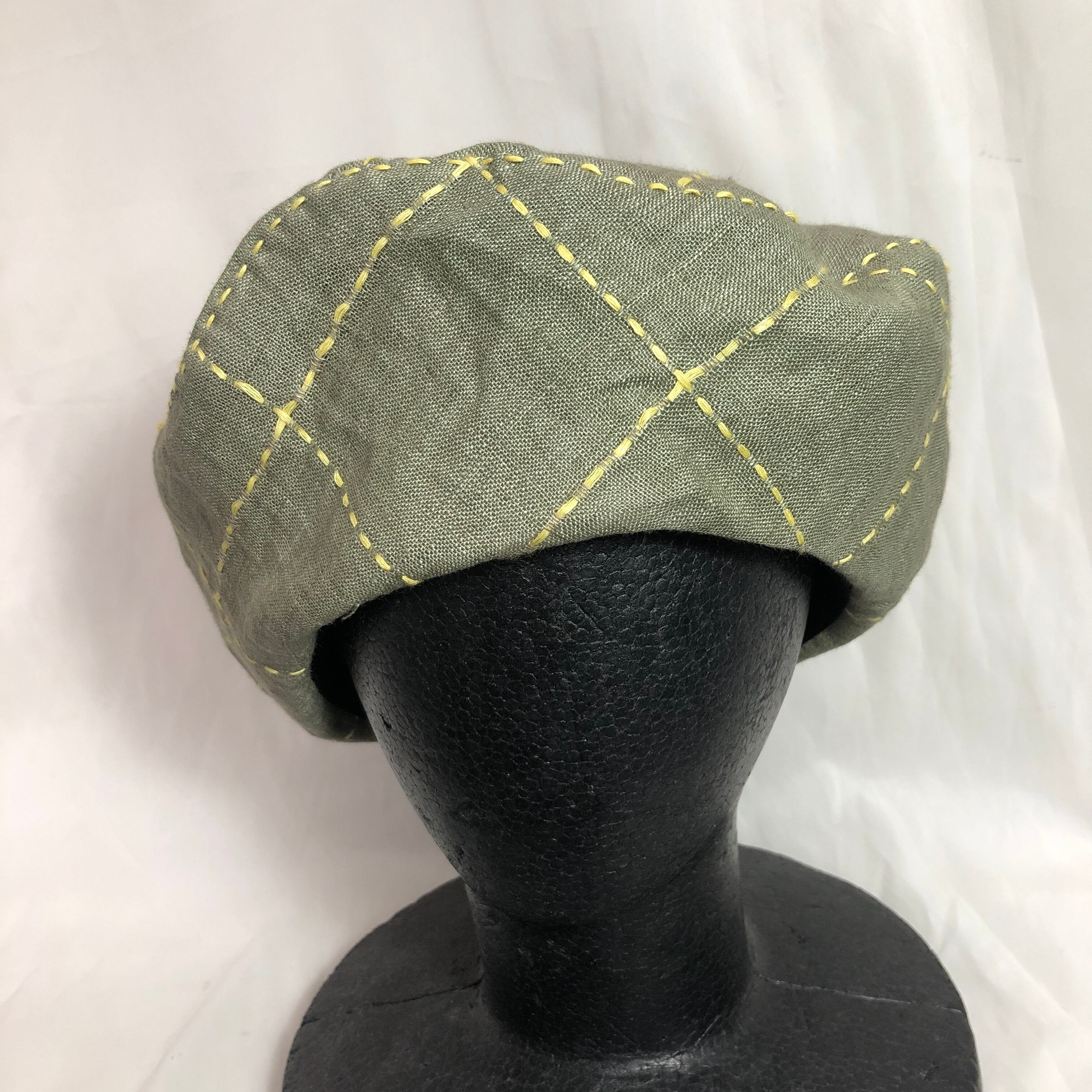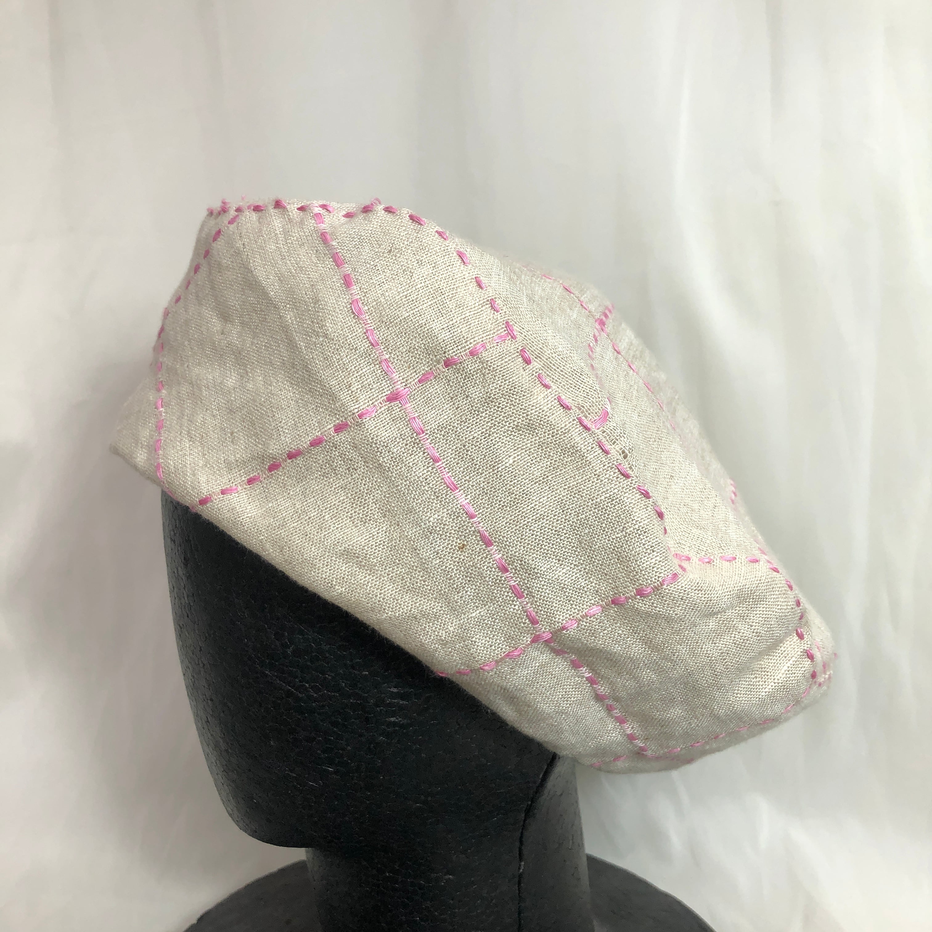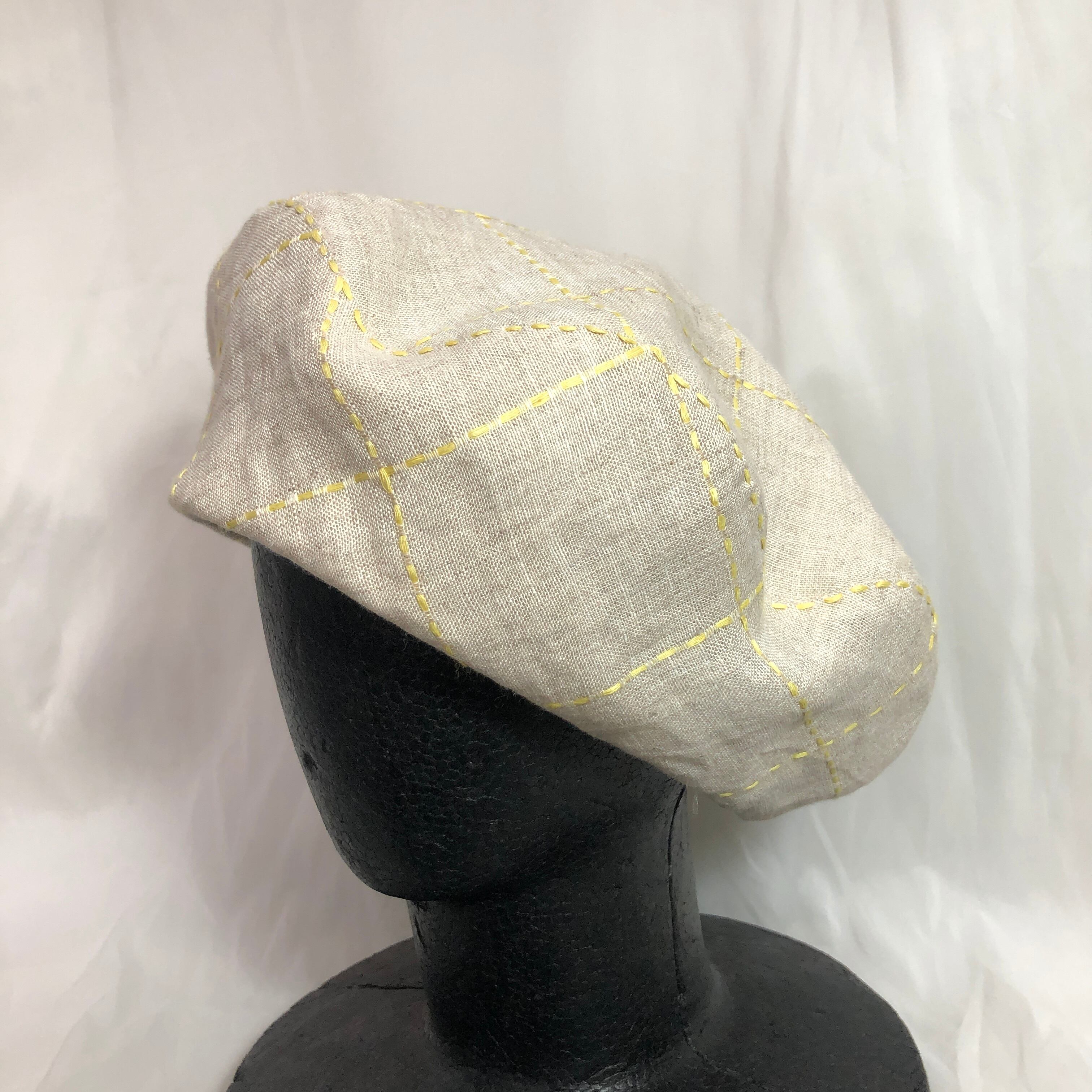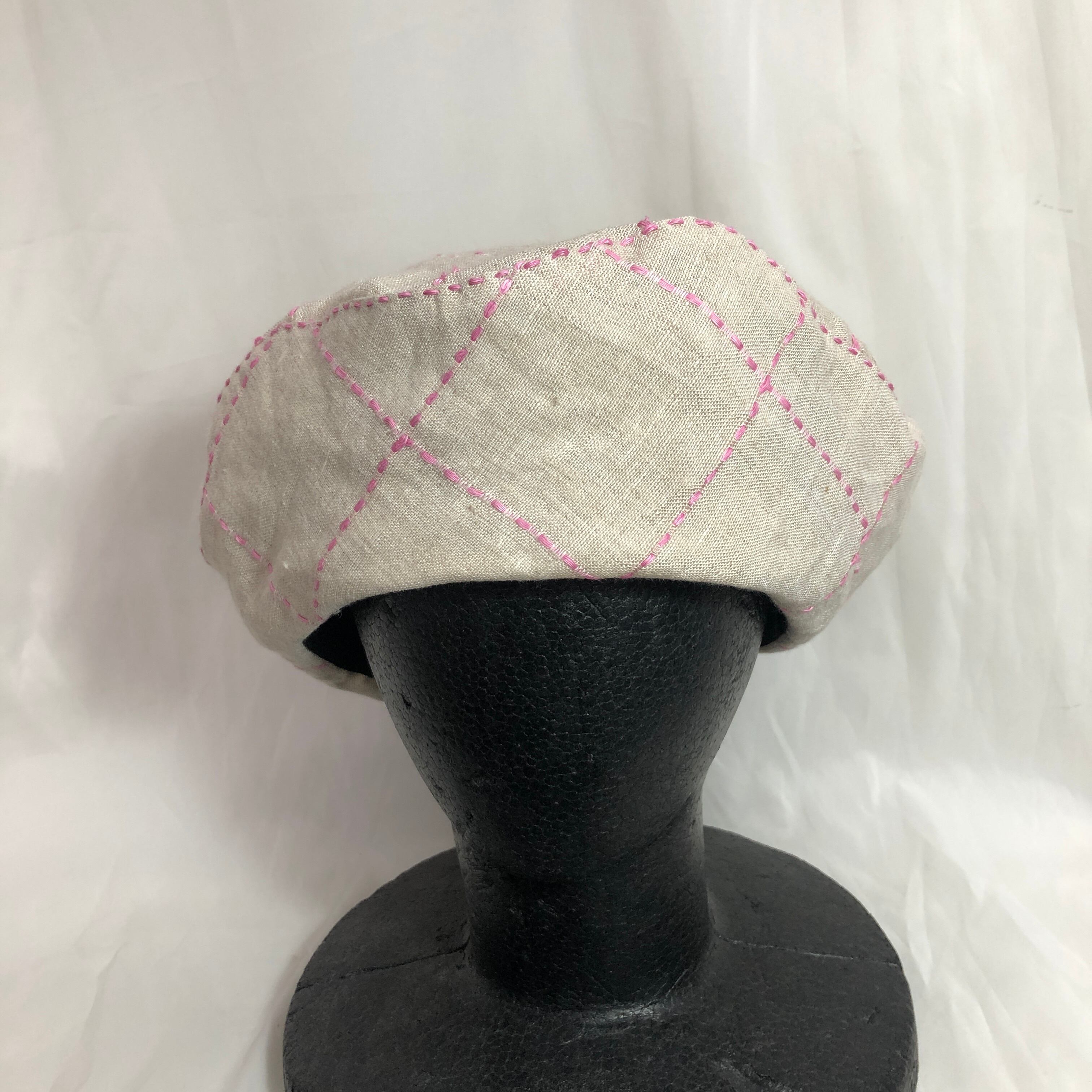 ●刺し子されたようなチェック柄のベレー